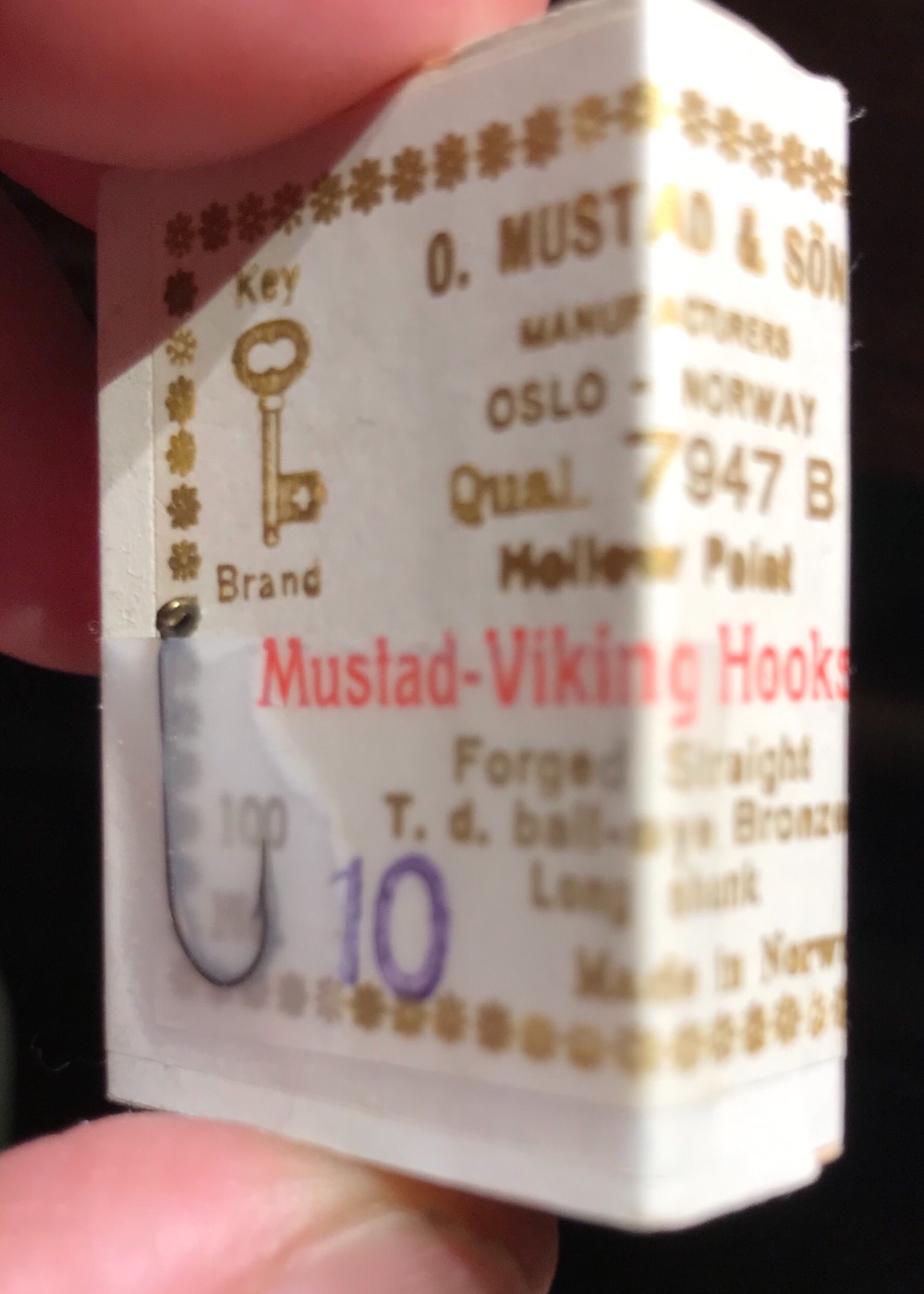 I wish we could put together a comprehensive list of production dates for Mustads (and other hooks) based on their packaging--it would be a bit of work, and would require a trip to Mustad hook Museum (https://www.visitnorway.com/listings/mu ... seum/6841/)--but what's not to like about that?