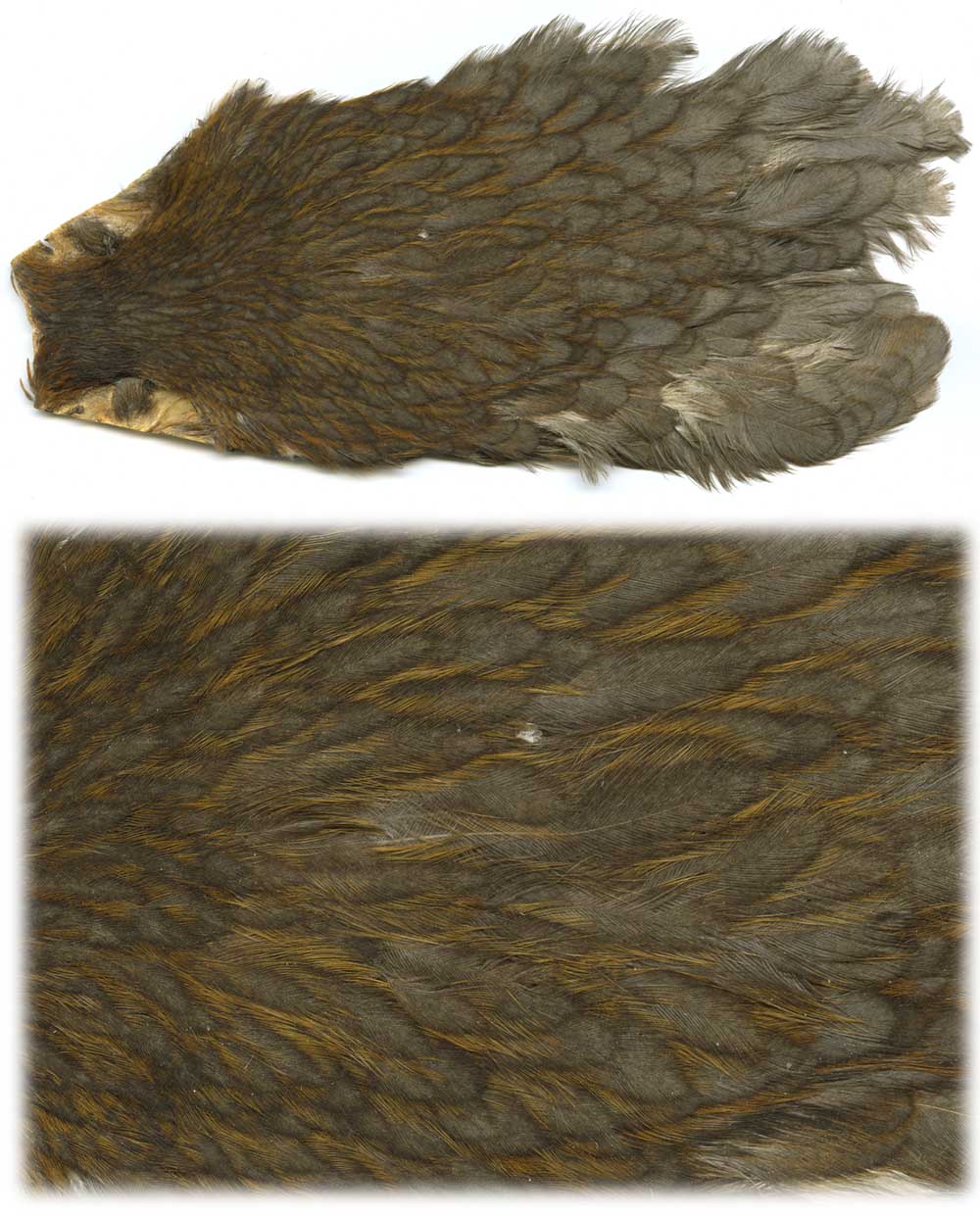 Ray, Here it is—an old, second-hand skin—origin unknown. What can you tell us about it? I haven't looked to see if they are available now.letumgo wrote:IronBlue - Would you mind posting a photo of your hen skin? I am intrigued by the coloration of the hackle. I am wondering if this is a dark honey dun or rust dun hen. Whatever it is, it is a lovely feather for flymphs.
