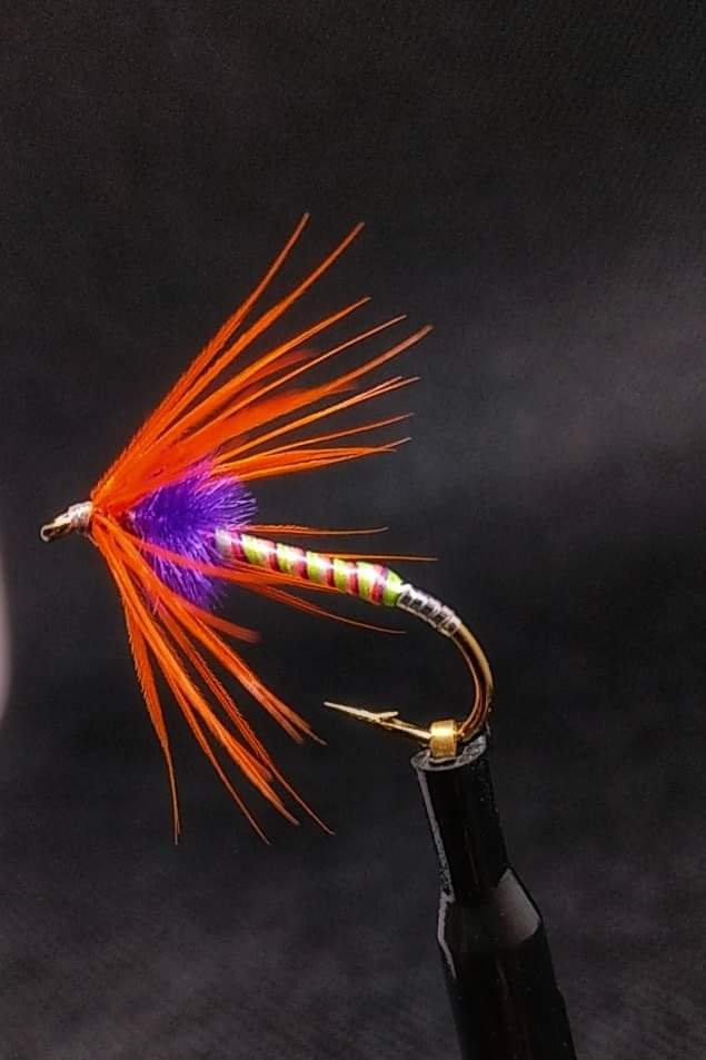 Body: Danville flat waxed nylon in chartreuse, purple, flo-red, and hot yellow tied in together and wrapped simultaneously