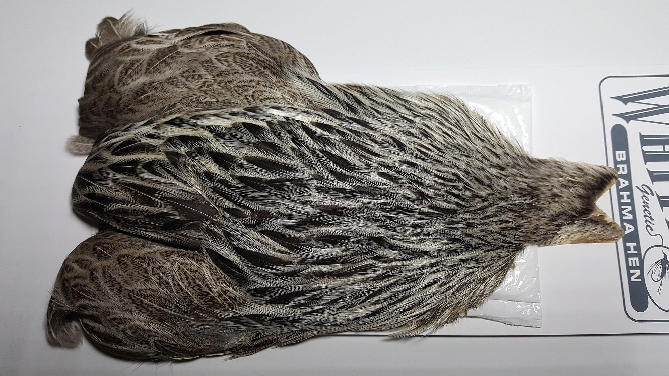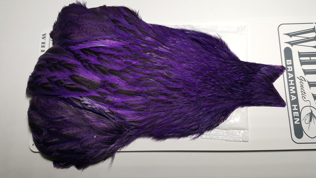 New arrival from Whiting Farms. Brahma Hen Capes in some cool colors.Badger dyed Purple (this is a new offering), Badger dyed Medium Dun, Badger dyed Dark Olive and Cream Badger. Price is $18.00 each + shipping. Send me a PM or email at Jimsflyco@aol.com if you are interested in purchasing . These are not on my website yet.