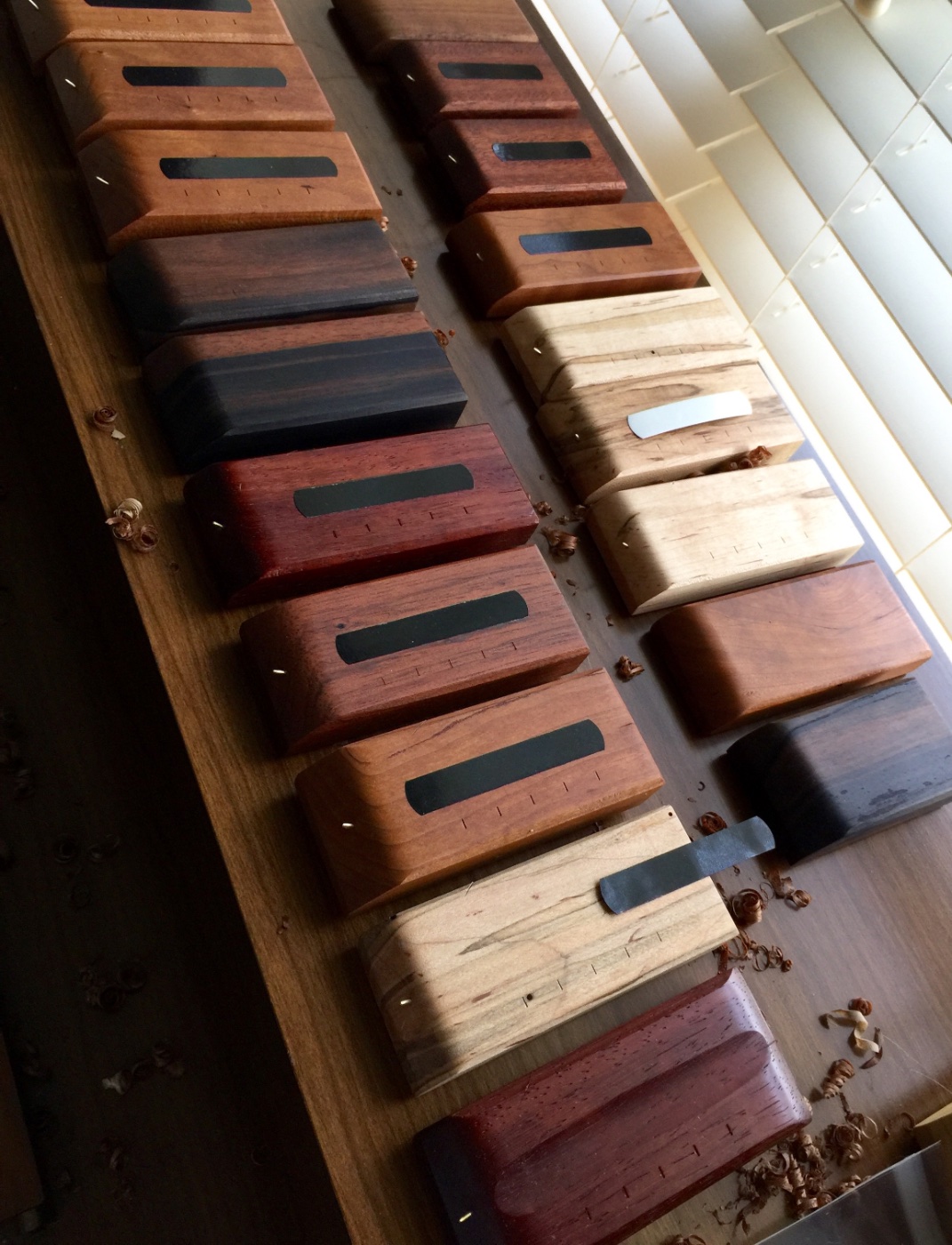 I haven't made many blocks in the past couple years and I'm out of finished blocks besides a couple that I owe people. I am working on them. I just found a couple pics I took when I was doing more of the exotic woods and thought I would share them. The blocks are essentially an expression of the American craftsmanship that devised the flymph in the first place, exquisite in it's modesty and function, so making these from exotics always felt a little inappropriate, but then we all love pretty things and these little blocks of wood, lacking in decoration are susceptible to immodest materials.