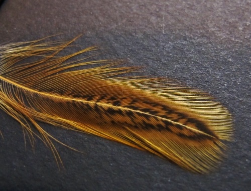 Thanks Ray. The hackle is natural welsumer brahma hen. Not dyed. What I love about the welsumer is that the barring is so distinct, & the brown coloration has a translucent glow. Order some chicks in the spring & by late fall you'll have it. Down to a partial cape so considering raising a few next season. If I do I'll save you one.